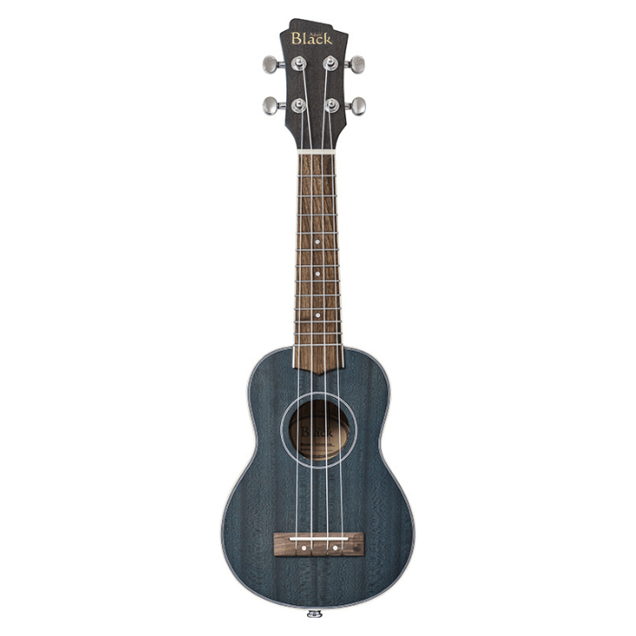 The Adam Black Soprano Ukulele See-Thru Blue combines unique design with effortless playing performance. The instrument delivers clear yet warm tones through its sapele wood construction top and back as well as the sides. Playing this ukulele feels comfortable because of its okoume neck combined with the black walnut fingerboard. This instrument combines an integrated undersaddle transducer and endpin jack that enables simple connection to any amplifier or public address system. The ukulele utilizes chrome diecast machine heads together with Aquila nylon strings that provide excellent string stability combined with superb playing experience.