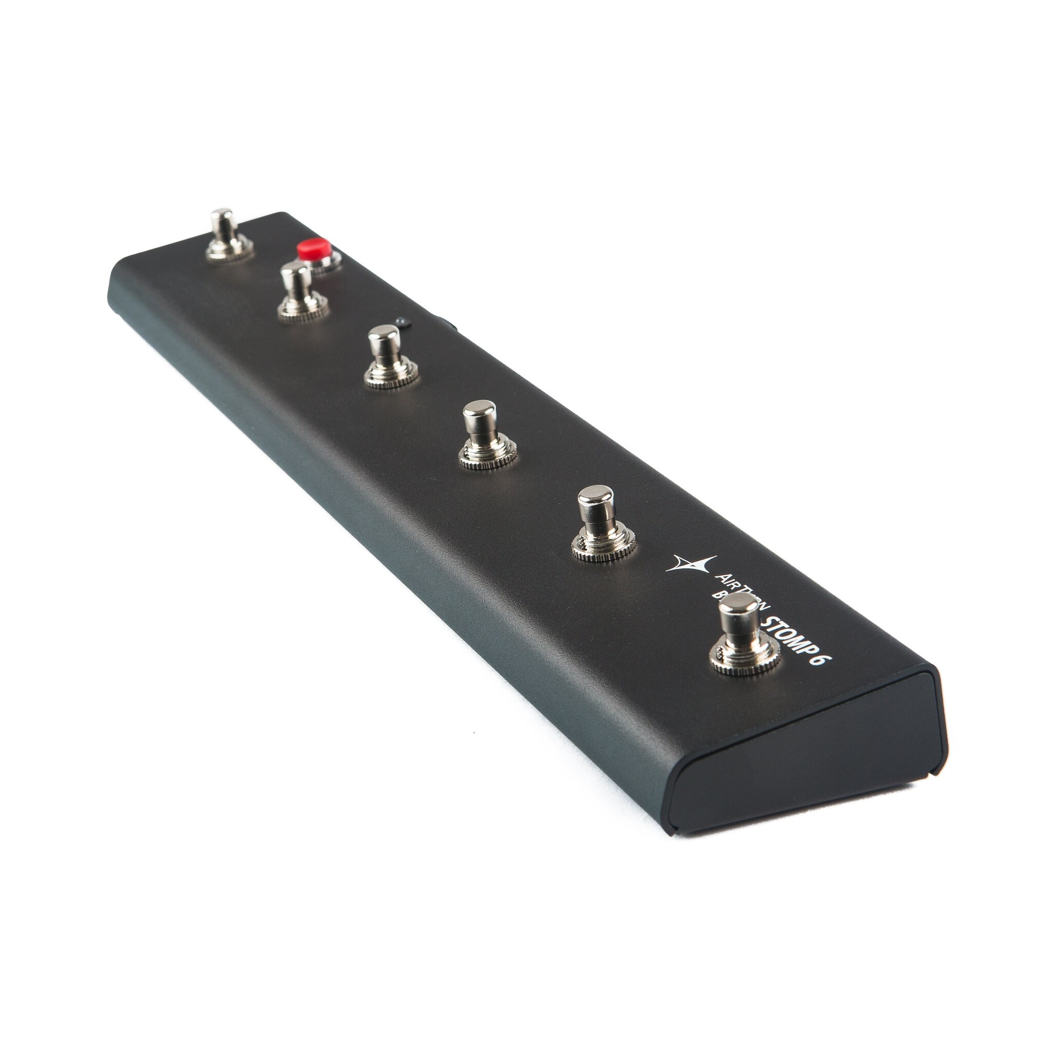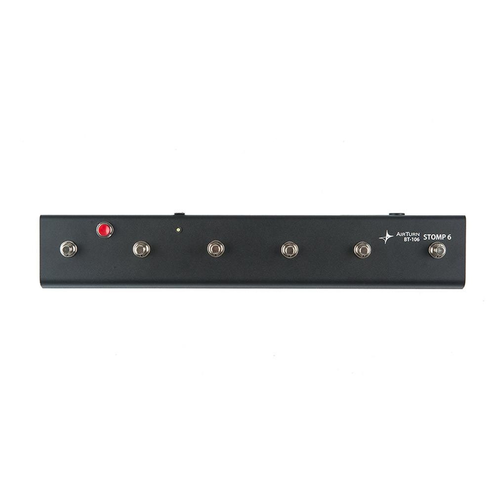 The AirTurn STOMP 6 Switch Controller is a rugged Bluetooth foot switch designed to offer hands-free control during studio and stage performances. The rugged foot switches embedded in a solid metal housing provide easy control of sheet music and backing tracks together with effects, lyrics, and more. The device maintains compatibility with hundreds of applications, such as OnSong, while linking to all major mobile devices through Bluetooth standards. The STOMP 6 runs on a 9V battery, which lasts up to 100 hours, and also supports power supply and pedalboard connections for six different operating modes that enhance workflow efficiency in live performances and practice sessions.