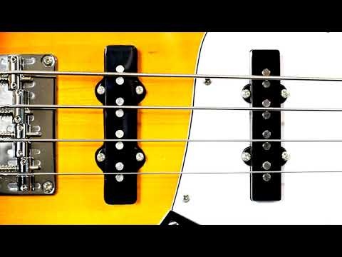 Aria STB JB/B BK Bass Guitar has a black finish, a basswood body, and a maple neck; the fingerboard has a stained walnut. Decked in two OJ-1 pickups, it provides classic jazz sounds and flexible tone shaping.