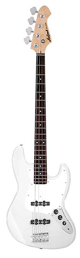 Aria STB JB/B WH Bass Guitar has a clean white finish, a basswood body, and a maple neck; the fingerboard has a stained walnut. Decked in two OJ-1 pickups, it provides classic jazz sounds and flexible tone shaping.