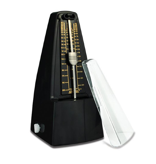 The Aroma AM707BK Mechanical Metronome helps you to stay on beat while practicing. You can find a broad range of tempos from 40 to 208 BPM, as well as beat options for practicing different time signatures. The clock has a classic pendulum shape and is built with durable chrome-coated copper. You can rely on the ticking and the chimes to keep the time steady.