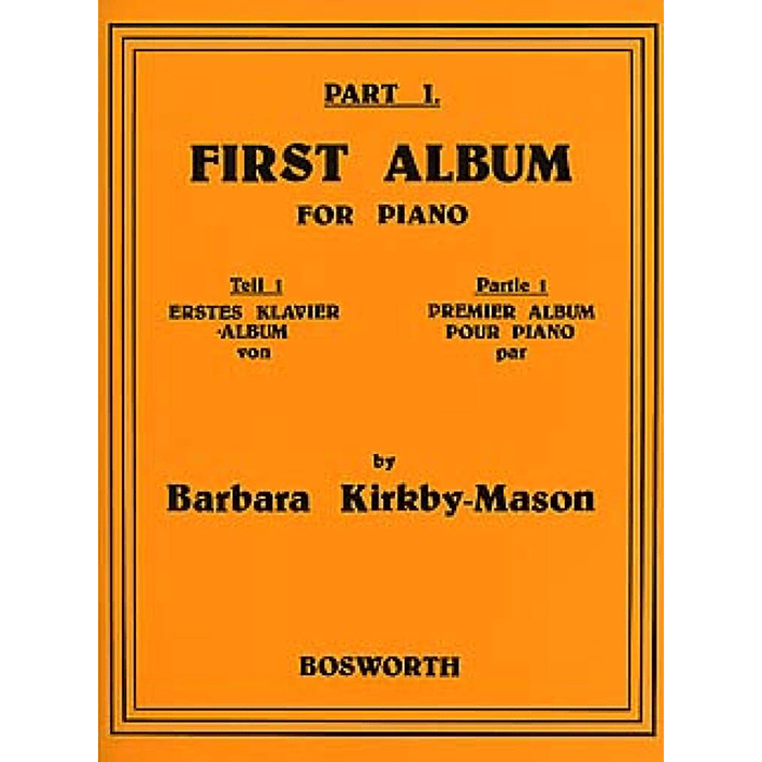 Barbara Kirkby-Mason: First Album For Piano Part 1 gives beginners a clear introduction to piano playing, with note guides, daily exercises, and easy five-finger pieces.