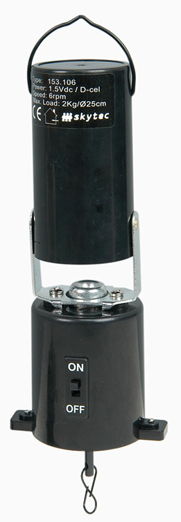Motor for mirror balls weighing up to 2 kg. Perfect for locations without wall outlets.