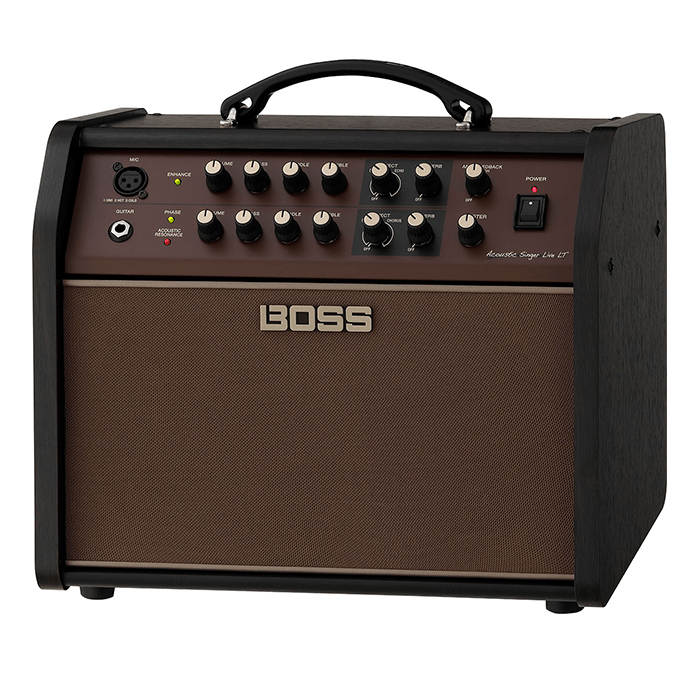 The Boss 60 Watt Compact Acoustic Amp with Bi-Amp Design gives acoustic players clear, powerful, and natural sound. Born from BOSS Acoustic Singer technology, this amp features a bi-amp system with a custom woofer and dome tweeter, delivering balanced full-range tone that projects every nuance of your guitar and voice. Dual independent channels let you connect an acoustic/electric guitar and a microphone, each with dedicated EQ and effects for precise sound shaping. Built-in reverb and chorus enhance your performance, while rear panel connections make it easy to link to PA systems, computers, or external audio sources. Compact yet powerful, this 60-watt amp is ideal for stage, rehearsal, or studio use.