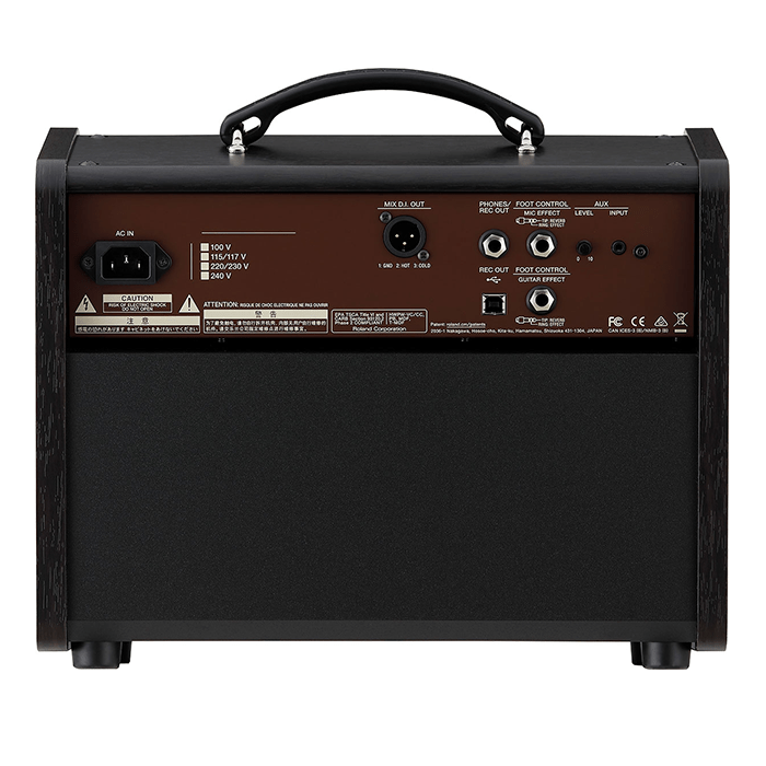 | Controls | POWER switch MASTER knob ANTI-FEEDBACK knob [MIC] ENHANCE button, VOLUME knob, BASS knob, MIDDLE knob, TREBLE knob, EFFECT knob, REVERB knob [GUITAR] PHASE button, ACOUSTIC RESONANCE button, VOLUME knob, BASS knob, MIDDLE knob, TREBLE knob, EFFECT knob, REVERB knob [AUX] LEVEL knob |