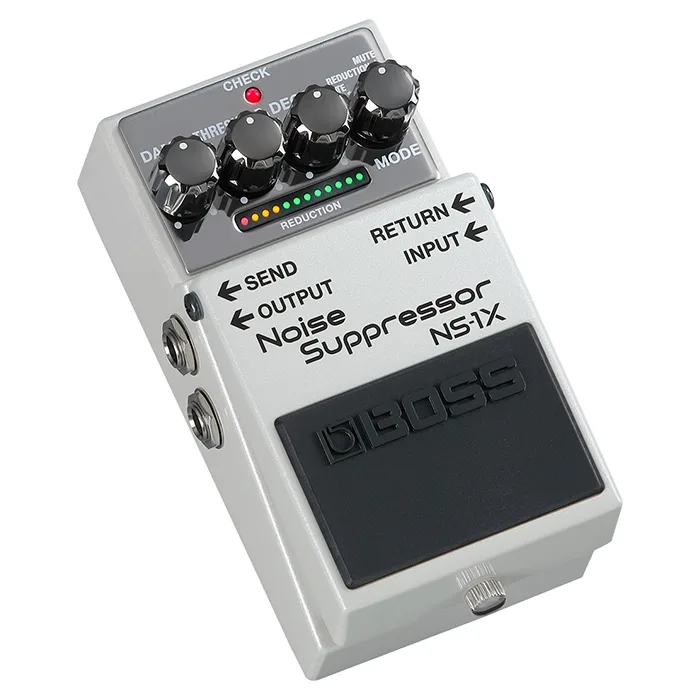 The Boss NS-1X Noise Suppressor Pedal uses its technology to eliminate noise without affecting your original musical tone or playing integrity. This device serves guitarists and bassists and includes Reduction Mode for silent rigs and Gate Mode for quick responses when using high-gain sounds. The NS-1X operates equally well throughout practice, performance, and recording situations to deliver professional sound quality without any impaired sound quality. Professional musicians should have this pedal since it delivers exceptional performance and straightforward functionality in addition to superior precision.