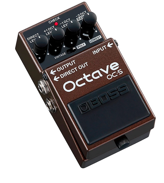 The Boss OC-5 Exp Guitar Effects pedal delivers precise octave effects for both guitar and bass. Its advanced tracking technology provides fast, natural response with minimal latency. Vintage mode reproduces classic mono octave sounds, while Poly mode handles chords with selectable note ranges. The pedal adds a new octave-up effect, which can be blended with octave-down tones or used alone. A mode switch optimizes the effect for guitar or bass, and the direct out supports wet/dry setups. Built for stage and studio use, the OC-5 offers reliable performance with BOSS durability and a five-year warranty.