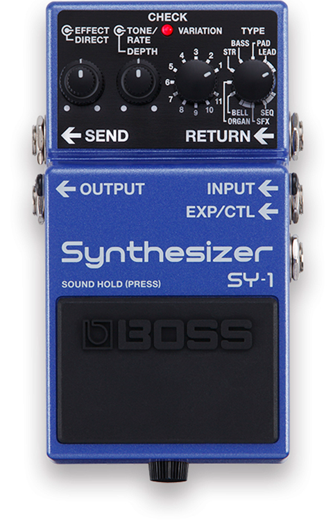The SY-1 makes it easier than ever to use BOSS' famous guitar synth technology in your creative projects. The 121 ultra-responsive sounds in this highly expressive tool have been compressed into a BOSS tiny pedal that easily integrates into any setup. The best part is that you don't need any previous synth programming skills to add a whole new spectrum of melodic textures to your song because it's as simple to use as a traditional stompbox.