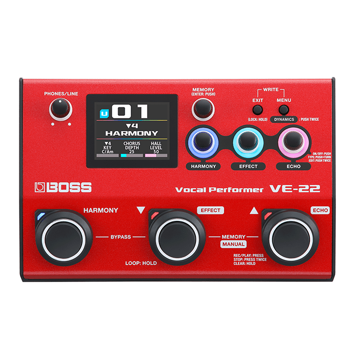 The VE-22 is a portable multi-effects unit for singers that lets you control your vocal sound. It offers a wide range of high-quality BOSS effects, from studio enhancements to dramatic voice changes, and includes real-time harmonies. With its user-friendly interface and versatile features, it’s perfect for practice, recording, and online streaming, ensuring you deliver memorable vocal performances wherever you sing.