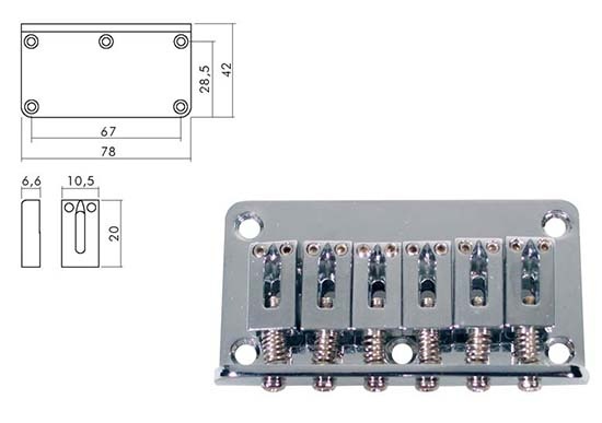 Bridge-tailpiece, Stallion, pitch 10,5mm, strings mounted in bridge, chrome