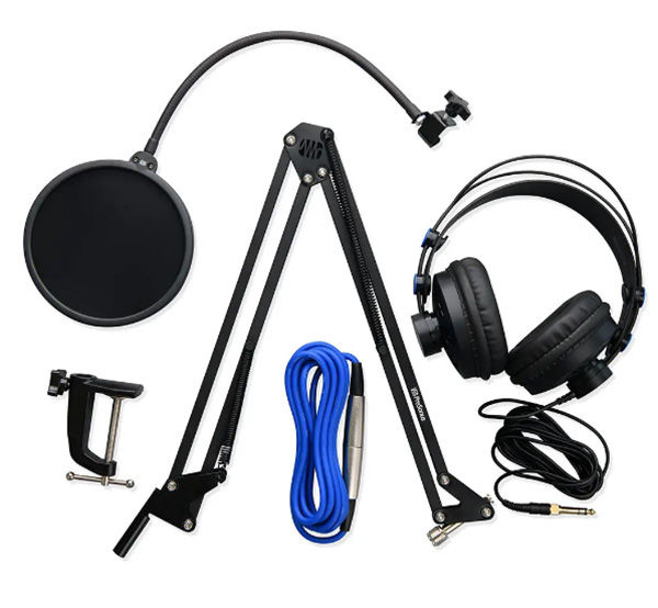 The Broadcast Accessory Pack includes a sturdy microphone boom arm, a pop filter, headphones, and a professional XLR cable. The adjustable-tension PBA-1 microphone boom arm is compatible with Revelator, PX-1, PD-70, and most other standard microphones via the included 5/8-inch male to 3/8-inch female thread adapter. With a boom arm, you’ll clear up valuable desk space while adding new mic positioning options—including far away from clackety mechanical keyboards.