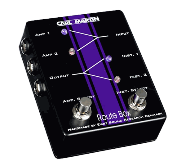 In order to effectively meet the needs of a show, musicians occasionally need to provide "more" equipment. Some of those scenarios are made easier by the Carl Martin Route Box. You might find yourself, for instance, with two guitars, two amps, and one pedal board. You can utilize your pedalboard in full while using either guitar via either amplifier by plugging each guitar into its respective Instrument In, out to the pedalboard, back from the pedalboard to the Input, and then from Amp 1 & 2 Out to each of the amps.