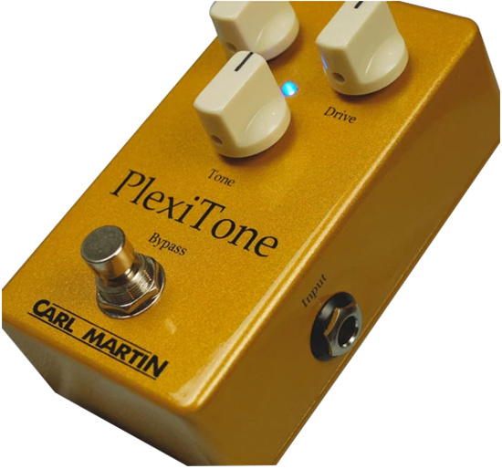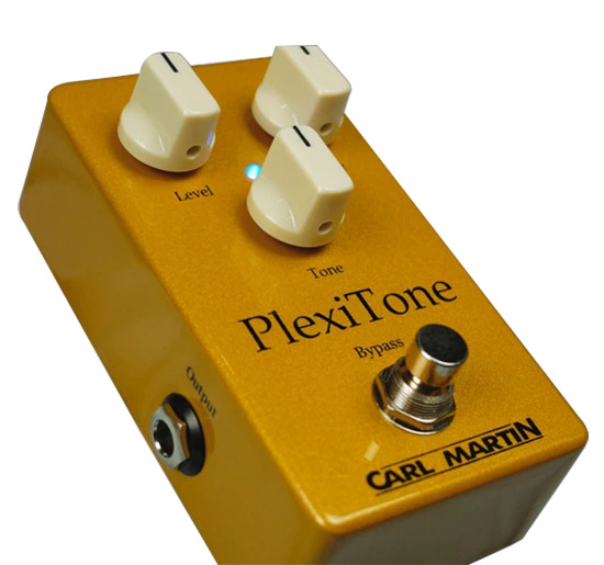 The new "single channel" Carl Martin PlexiTone was created in collaboration with Pete Thorn and comes with 3 knobs and 1 switch in a tiny, pedal-board compatible enclosure. It has the same gain structure as the High Gain option on the original Pro-Series PlexiTone, with Pete's minor adjustments giving this new pedal a tighter bottom-end and somewhat softer high frequencies. It simply works better with other amps.