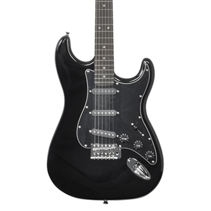 The Chord CAL63 Electric Guitar – Black is a classic, affordable choice for guitarists seeking versatile sound and comfort. It features a contoured basswood body, 22-fret maple neck, HPL rosewood fingerboard, 3 single coil pickups, and a vintage-style vibrato bridge.