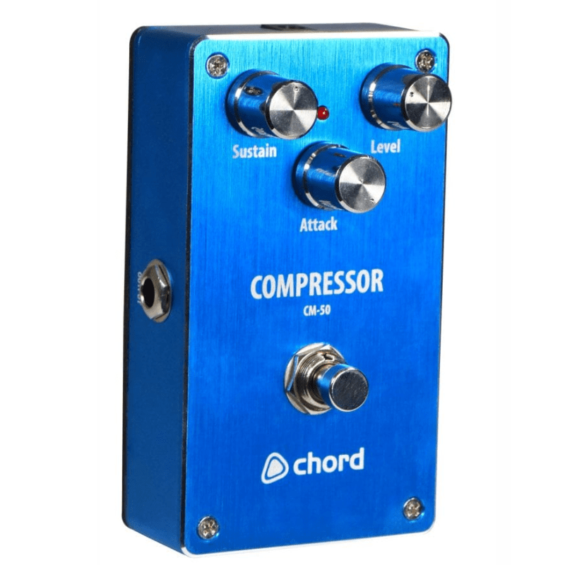 The Chord CM-50 Compressor Pedal enhances sustain and balances your guitar tone. Sustain, Level, and Attack controls let you shape dynamics for smooth arpeggios and crisp country licks. Runs on 9V battery or DC adaptor.