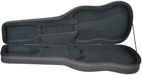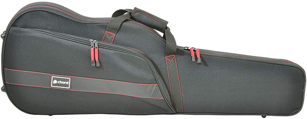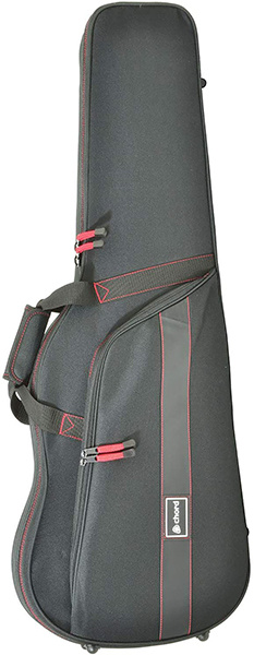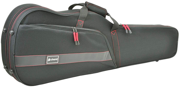 Chord ultra-lightweight transit cases for electric guitars have shaped interiors formed from solid expanded foam. The exterior is enclosed by a durable fabric secured by a heavy-duty zip. Having a large external pocket for literature and accessories too. The outer is furnished with protective rubber feet, edge piping, and double-stitched carrying handles. The Interior has body and neck supports with an accessory section and is coated with synthetic plush material.