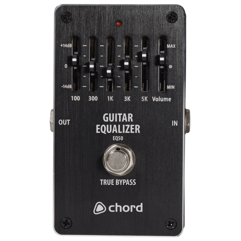 The Chord EQ-50 5-band Graphic EQ Pedal provides precise tone control for guitarists looking to refine their sound. With five frequency sliders and a master volume control, you can boost mids for focused overdrive, scoop frequencies to balance heavy riffs, or smooth harsh tones in clean signals. It works equally well with distorted or clean guitar setups, giving you flexibility for studio, rehearsal, or live performance. The EQ-50 runs on a 9V battery or optional DC adaptor, making it simple to integrate into any pedalboard.