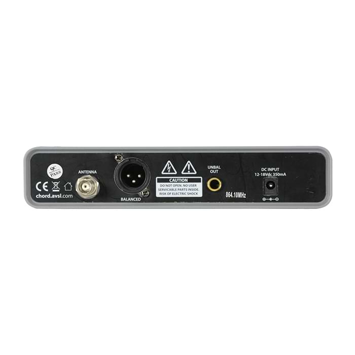 The Chord UHF Wireless Handheld Microphone System includes a fixed UHF transmitter, half-rack receiver, and rack-mount accessories. It offers stable signal transmission, licence-free use, and comes with a mains adaptor and batteries.