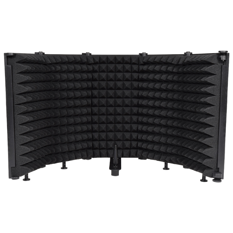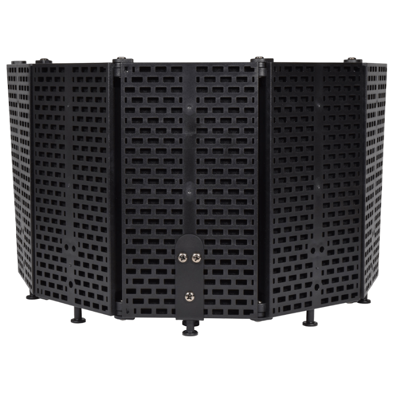 The Citronic MIS-705P 5-section Mic Isolation Screen gives you cleaner vocal recordings by cutting room noise and reflections. Its acoustic foam panels fold to adjust the shape or store away with ease. The screen mounts on a standard mic stand and includes a mic post for direct microphone placement. Made from lightweight thermoplastic panels, it is sturdy, portable, and easy to use in home studios, podcast rooms, or small recording spaces.