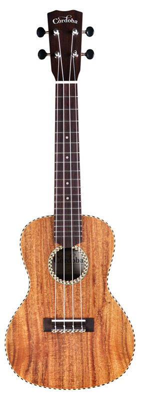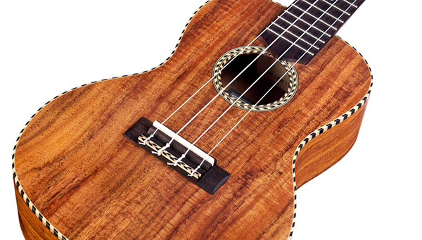 The 25 Series embodies the charm of traditional ukulele ornamentation combined with the striking natural figure of acacia, an exotic tropical wood closely related to koa, the beloved tonewood native to Hawaii. All 25 series ukuleles feature a solid exotic acacia top and figured acacia back and sides, providing a bright, round, and familiar voice. A wooden rope-style top binding and herringbone rosette and tie block further the unique visual appeal while hearkening to the ukulele's origins. Other features include a thinly applied satin finish, bone nut and saddle, and Aquila strings.