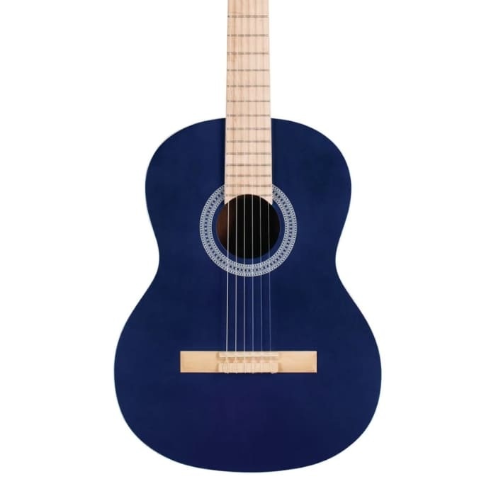 The Cordoba C1 Matiz In Classic Blue is a full-size classical guitar with a bold look and warm tone. It features a spruce top and mahogany back and sides for balanced sound. The mahogany neck and maple fingerboard feel smooth and comfortable. A satin finish helps protect the guitar during daily use. It comes with a matching recycled nylon gig bag, making it easy to carry to lessons, practice, or performances.