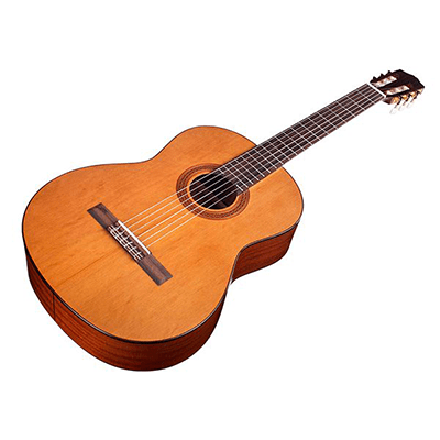 The C5 is a lightweight, beginner-friendly nylon-string guitar with a solid Cedar top and Mahogany back and sides. It offers a clear, strong tone with excellent sustain. Handcrafted in the traditional Spanish style, it features a carved headstock, hand-inlaid wood rosette, Pau Ferro binding, Savarez strings, and a glossy finish. The neck includes a thin, adjustable truss rod for stability. It is also available with a solid Engelmann Spruce top and a Natural finish.