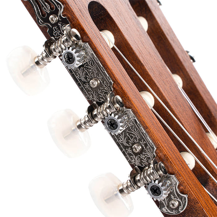 The Cort AC70 Open Pore Classical Guitar is designed for beginners and players who value comfort, great tone, and easy playability. It features a spruce top and mahogany body that deliver a clear, warm sound perfect for classical and fingerstyle music. Its 3/4 size body and shorter 22.8" scale make it comfortable to hold and ideal for younger players or travel. The dovetail neck joint and fan bracing provide solid tone and durability, while the open pore finish gives it a natural feel. Complete with Savarez® Cristal Corum strings and a gig bag, it’s ready to play right out of the box.
