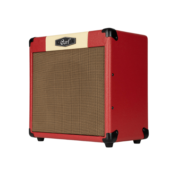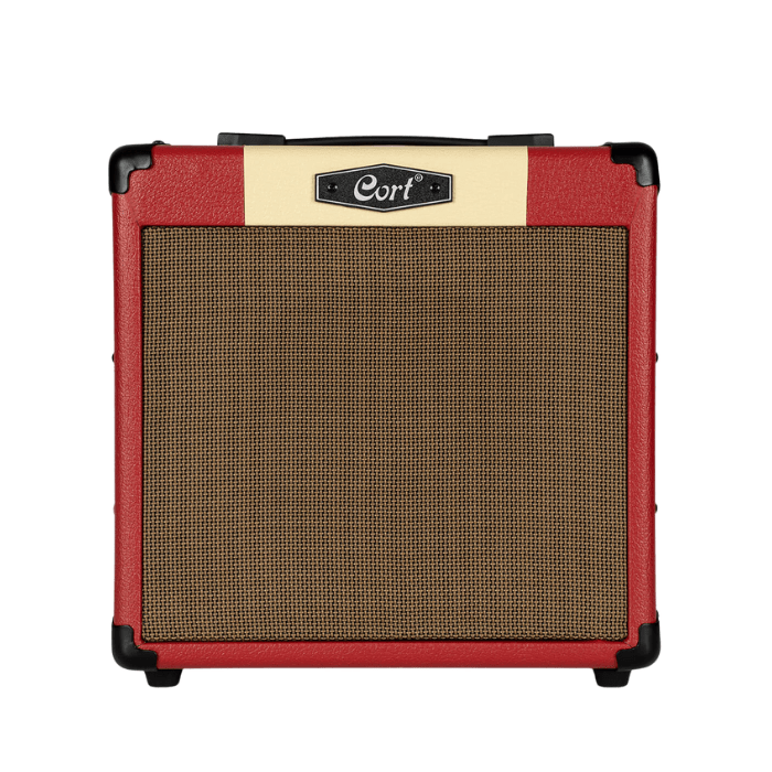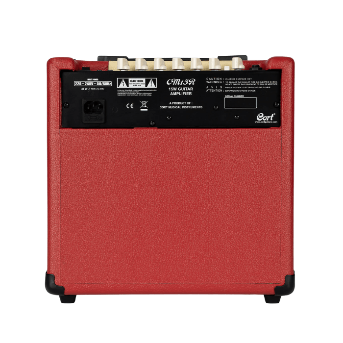 The Cort CM15R Amp, in its elegant dark red appearance, unites fashion sense and extraordinary sonic capabilities. A 15W output and custom 8” speaker working with classic overdrive produces warm, rich tones that perform perfectly in both home practice and studio recording, and small live performances. The CM15R serves guitarists at all levels through its customizable tone controls that come packaged in an attractive, small design suitable for any installation.