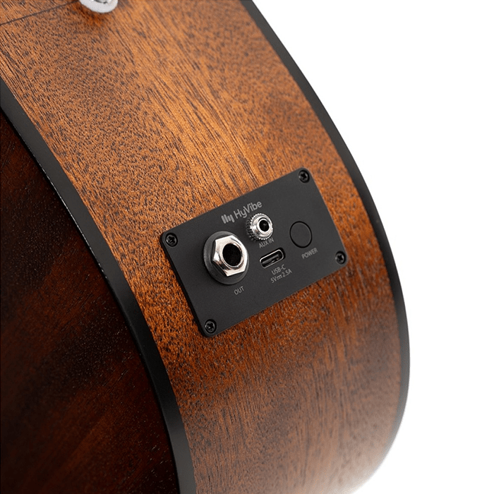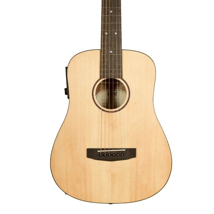 The Cort Earth GO, Open Pore Electro Acoustic Guitar is a 3/4 dreadnought with solid Sitka spruce top, mahogany body, and HyVibe H2 smart system. Features include laurel fingerboard, coated strings, die-cast tuners, stylish open pore finish, and a padded gig-bag.