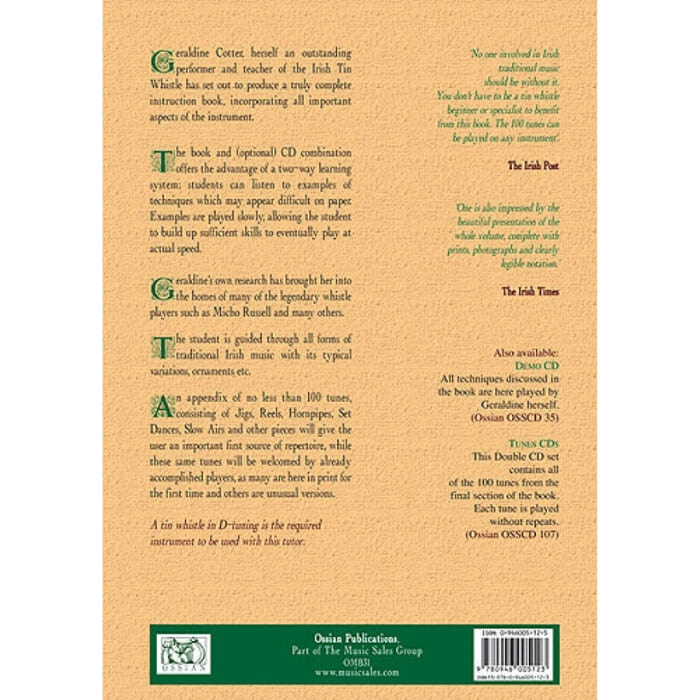 Cotter Geraldine Traditional Irish Tin Whistle Tutor Pwh Book is a beginner-friendly guide for learning the Irish tin whistle. It includes lessons on fingerings, rhythm, and ornamentation. An appendix of 100 Irish airs and dance tunes gives players plenty of material to practice. Clear notation and examples help improve tone, timing, and expression.