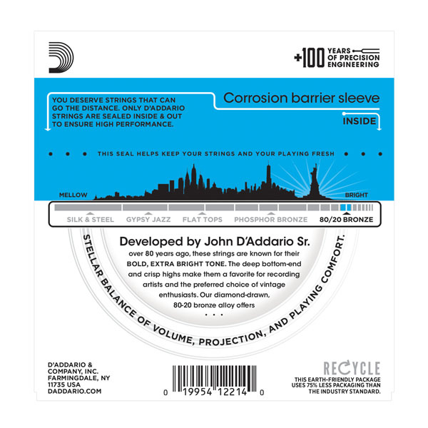 - D’Addario 80/20 Bronze strings are made in the USA—drawn to our exacting specifications at our New York production facility.