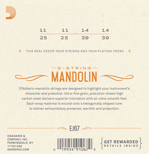EJ67 is a medium gauge nickel wound string set for mandolin.