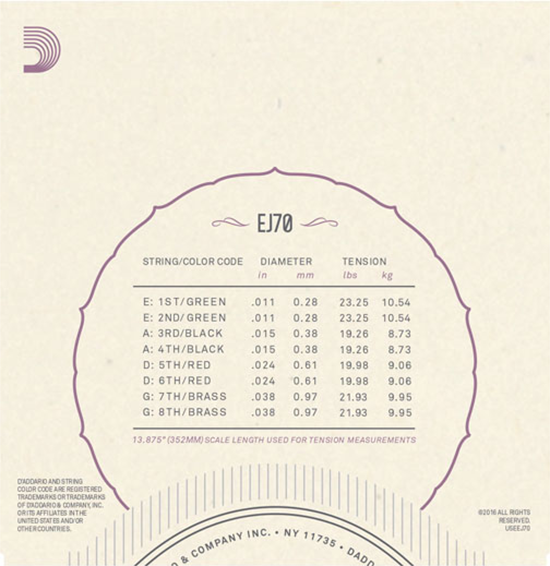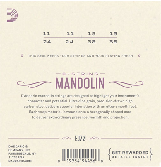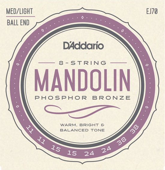 EJ70 is a medium-light gauge set of mandolin strings with ball ends. Since introducing Phosphor Bronze guitar strings in 1974, D'Addario has been known for warm and well-balanced acoustic tone.