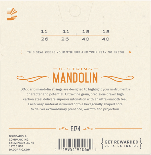 EJ74 is the most popular Phosphor Bronze mandolin string set. Since D'Addario introduced Phosphor Bronze guitar strings in 1974, they have been known for their warm and balanced acoustic tone.