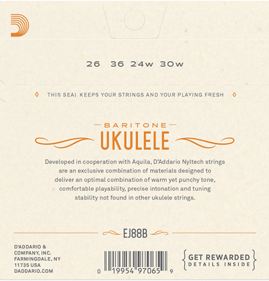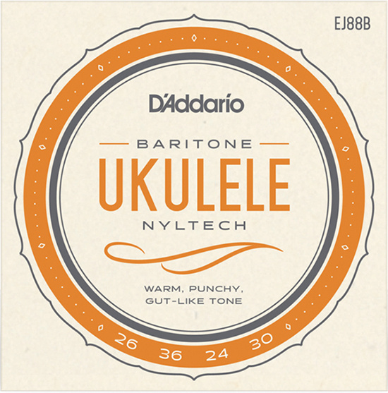 The EJ88B is a baritone ukulele string set made with Nyltech, providing a warm yet punchy tone that mimics the sound of natural gut strings.