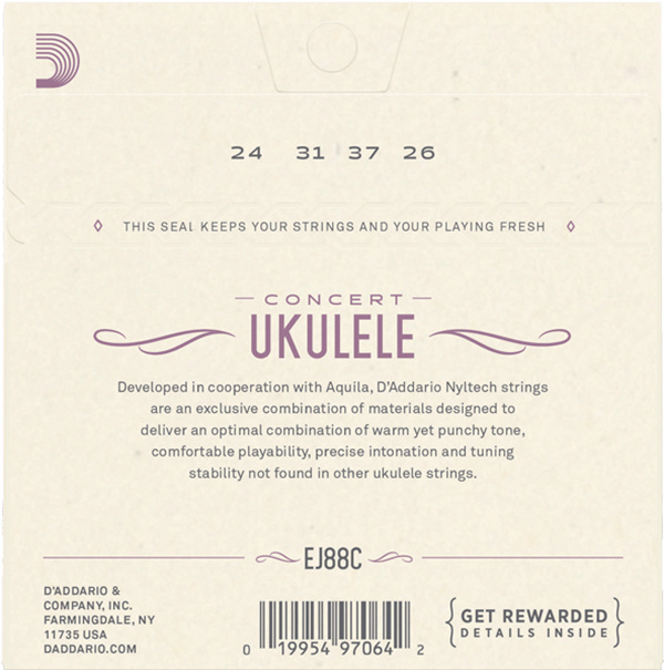 The EJ88C is a concert ukulele string set made with Nyltech, offering a warm and punchy tone similar to natural gut strings.