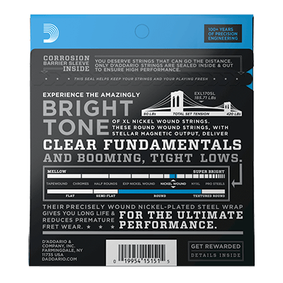 - Like all D’Addario bass strings, XL Nickel are made with our proprietary Hex-Core, ensuring perfect intonation, consistent feel, and powerful durability.