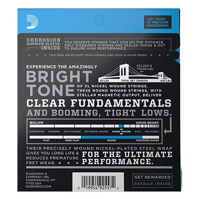 - Like all D’Addario bass strings, XL Nickel are made with our proprietary Hex-Core, ensuring perfect intonation, consistent feel, and powerful durability.