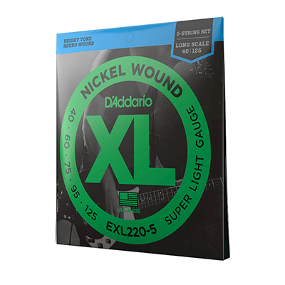 XL Nickel are the industry standard for electric bass strings. Known for their clear fundamentals and booming lows, they are trusted by players for any performance. Made with a high carbon steel core and nickel-plated steel wrap, XL Nickel strings provide a bright tone and smooth playability for various styles. This 40-125 Super Light set is designed for 5-string basses, featuring a bright attack and very light tension for easier playability.