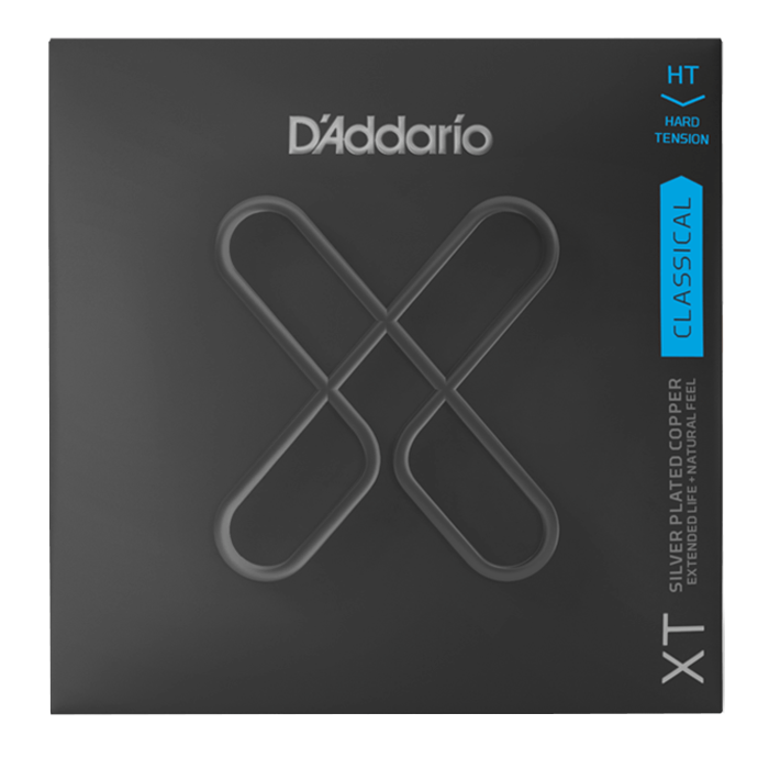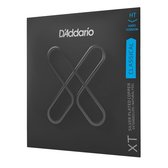 D'Addario Hard Tension XT Composite Nylon Strings. These strings are developed specifically for classical guitarists seeking durable products that generate dynamic sounds through their composite bass strung with multifilament cores wrapped in silver-plated copper. The Pro-Arte nylon trebles produce clear and harmonious sound, while the XT coating protects the strings but maintains the natural playing quality. The precise sound quality of hard tension provides players with better projection abilities together with note control.