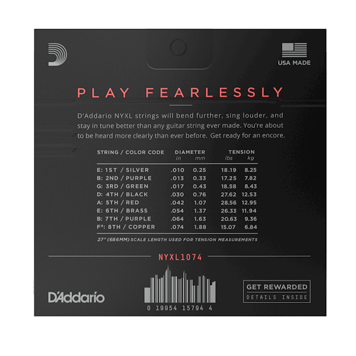D’Addario NYXL Light Top/Heavy Bottom 8-String Electric Guitar Strings feature enhanced stability, robust strength, and a bold mid-range tone. Nickel-plated steel wrap wire on these premium uncoated strings increases the 1–3.5 kHz frequencies so your guitar can be heard better in the mix. Thanks to NY Steel cores and Fusion Twist, these strings are 40% more powerful and keep their tuning 131% better. These strings will remain stable by shredding as fast as you can or just soloing.