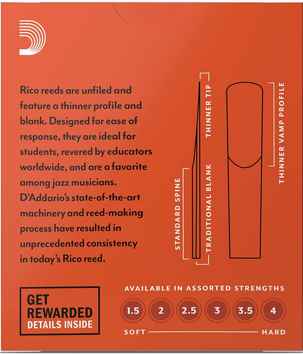 Rico by D'Addario Bb Clarinet reeds are crafted with beginners and educators in mind, thanks to their traditional blank and profile for ease of response, plus unfiled cut for added support. These reeds are available for a full range of clarinets and saxophones to best suit your playing needs.