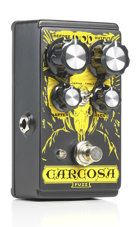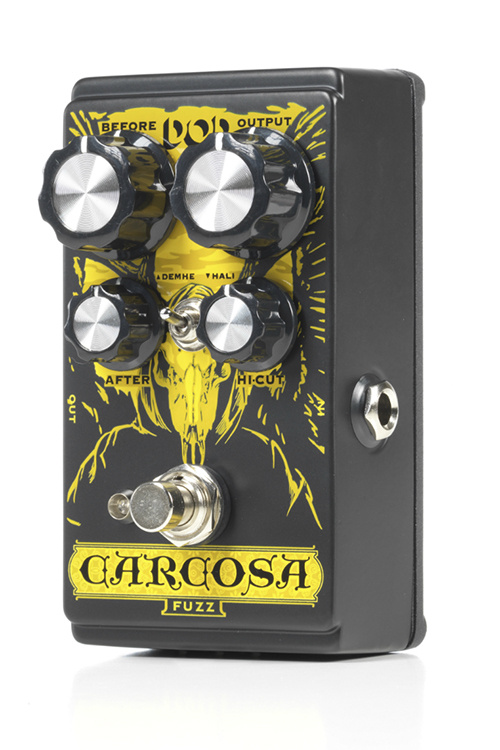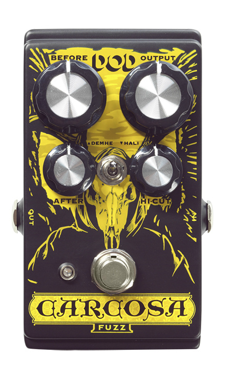 The DOD Carcosa Fuzz opens a portal to a parallel fuzz world where timeless legend tones mingle with splattered and fragmented Pollock abstractions. Tones ranging from pig fatness to desiccated shards can be produced using Carcosa's flexible AFTER bias control in combination with its two toggle locations. Because of its adaptability, the Carcosa Fuzz works well with both clean and muddy amplifiers. The King in Yellow's face, true bypass, and enormous output create the ideal environment for fuzzy insanity. The DOD Carcosa Fuzz stands out in a mix thanks to its emphasized treble and mid-range characteristics. It has been made to have excellent note articulation with chords while yet cutting through a strong, thick ensemble. Extreme bias (AFTER) ranges, however, allow for the creation of a variety of bizarre and outrageous sounds.