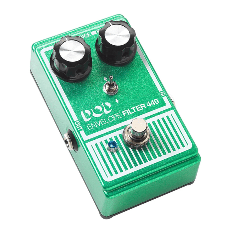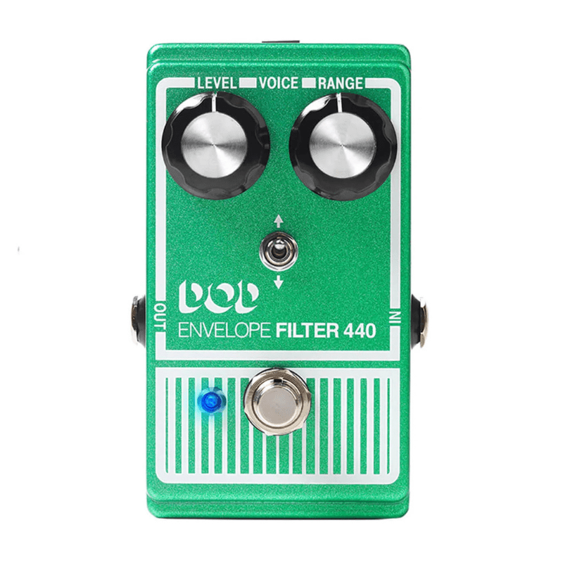 The DigiTech DOD Envelope Filter 440 is a pedal for guitar, bass, and keyboards, delivering iconic envelope filter effects. Recreate classic quack, squonk, and wah sounds or explore new tones with the up/down toggle. Sturdy all-metal chassis houses ¼” input/output jacks, while power comes from a 9V battery or optional PS0913DC supply. Ideal for funky chord work, simulated wah, and expressive filter sweeps, the 440 is compact, pedalboard-friendly, and ready for both studio and live performance.