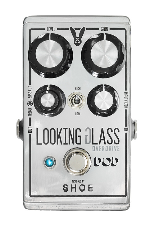 The Looking Glass Overdrive is the result of a partnership between DOD and artisan pedal manufacturer SHOE Pedals. SHOE Pedals' Christopher Venter is renowned for his original circuits, vibrant take on vintage effects, and clean appearance. The Looking Glass's unique Input Filter feature was created for maximum adaptability. It allows the player to moderate excessively bright instruments and works with your guitar's pickups to help you cut through the mix without damaging the ears of the audience. The adaptable, simple pre-drive Bass Cut and post-drive Treble settings let you tune in any raunchy, raw tone you want while still maintaining mix clarity. Additionally, there is sufficient output and gain available to drive even the Red Queen insane. The Looking Glass has a power supply connection and is pedalboard compatible thanks to its true bypass design, which keeps your guitar tone in excellent condition even when it is off.