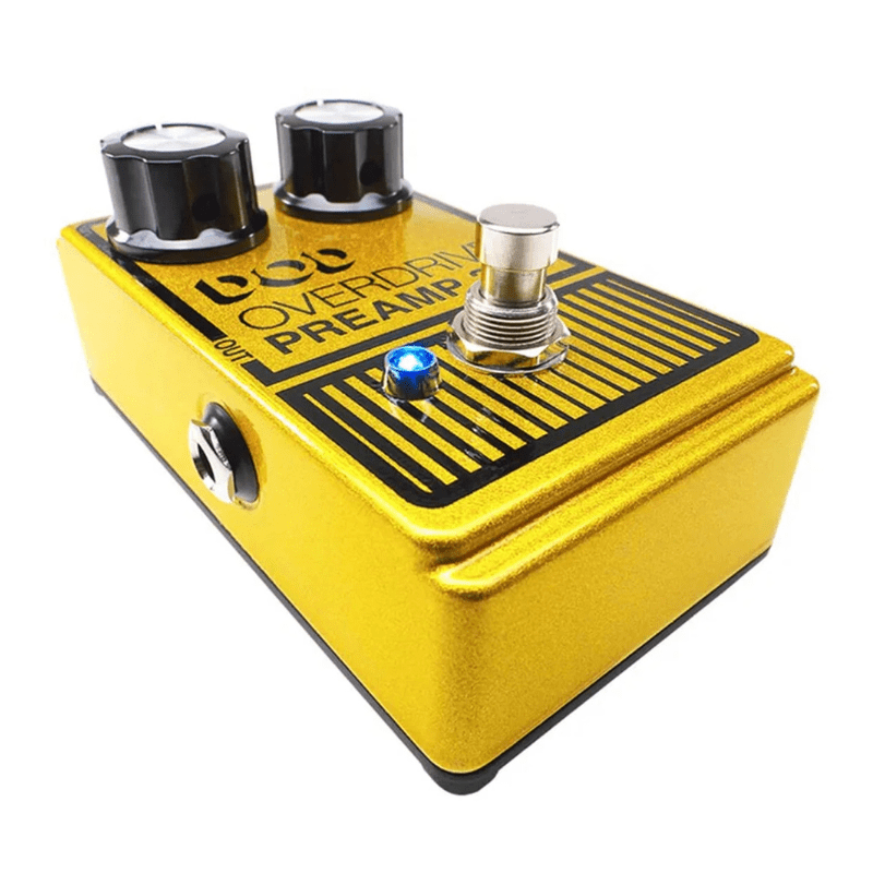 The DigiTech DOD Overdrive Preamp 250 delivers authentic vintage overdrive and boost tones inspired by the original ’70s design. It features a vintage LM741 OpAmp for classic sound, a sturdy aluminum chassis, true bypass, and LED indicator. Compact and lightweight, it is pedalboard-friendly and powered by a 9V battery or standard DC supply. The bullion gold finish makes it visually striking while the performance ensures smooth, responsive overdrive for all styles of guitar playing.
