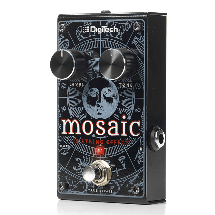 DigiTech Mosaic Polyphonic 12-String Guitar Effects Pedal turns your humble 6-string electric or acoustic guitar into a richly jeweled 12-string instrument. This compact pedal features pitch-shifting and doubling effects, replete with lush and vibrant tones created with low strings blended with octaves of doubled high strings. Level and tone controls allow for customization, while true bypass keeps the signal clean. Perfect for adding some 12-string bling to your output!