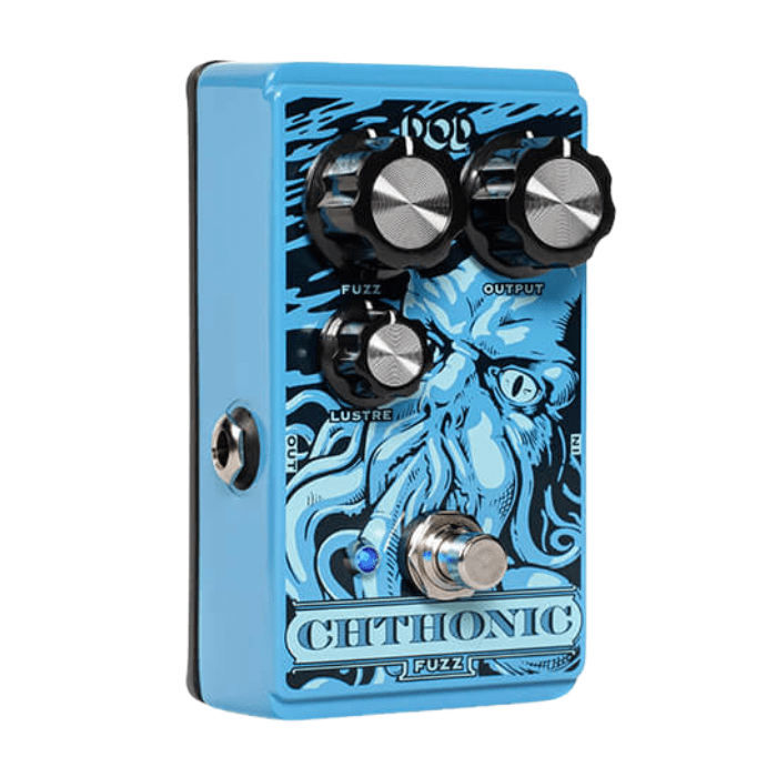 The DOD Chthonic Fuzz pedal provides guitarists with thick, fade-shaped fuzz tones that have a vintage darkness. This device excels when connected to single-coil or P90 types of pickups and gold-foil pickups because it generates raw, sludgy, smudged sounds with clean amplifiers. This pedal offers users an elegant control system together with exclusive graphic styling for producing outerworldly audio shapes using its minimal design.