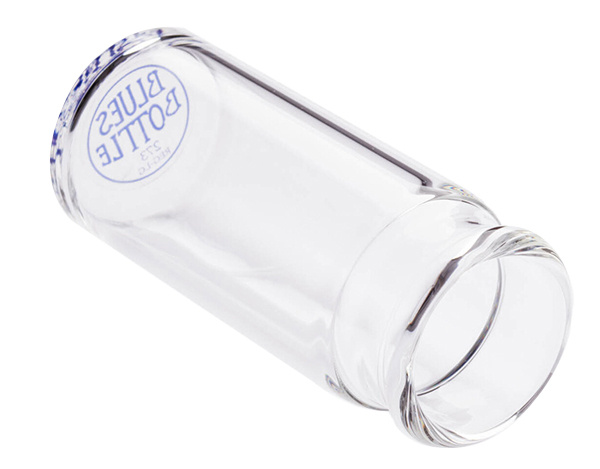 This glass medicine bottle slide provides a crisp, bright tone, featuring a closed, weighted end for balance, regular wall thickness, and a large diameter.