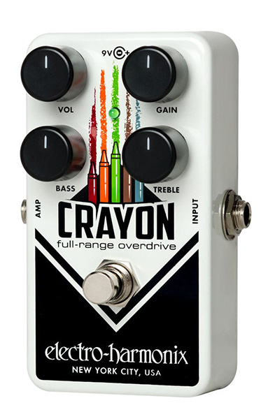 The EHX Crayon Full-Range Overdrive is a versatile overdrive with independent Bass and Treble controls and an open frequency range that provides players with a musical alternative to customary mid-focused overdrive pedals. It delivers a range of sounds going from a suggestion of dirt to full-on distortion and is equally impressive all by itself or when driving another overdrive pedal.